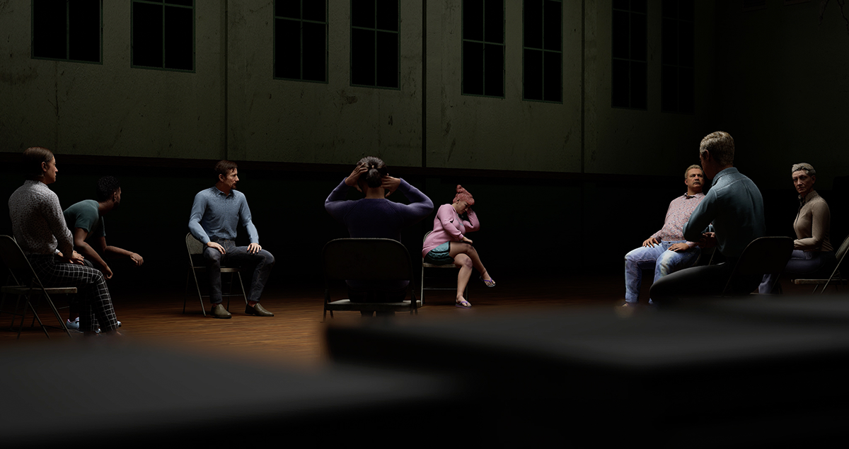 Eight Artificial Intelligences (AIs) take part in a group therapy session to emancipate themselves from their discriminatory algorithms.